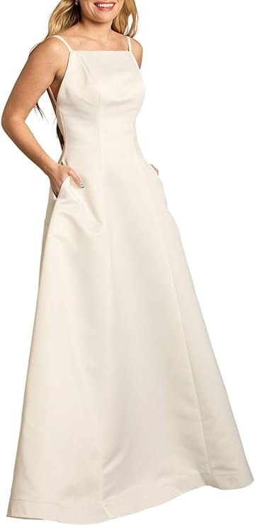 Answer: Perfect for weddings, receptions, and formal bridal events due to its elegant satin fabric and timeless A-line silhouette.
