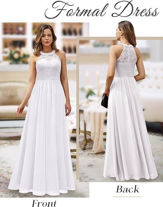 Answer: Absolutely. The elegant design, halter neckline, and floral lace details make these dresses perfect for bridesmaids.